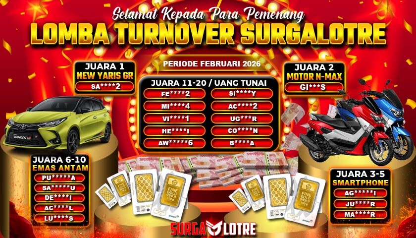 Selamat datang di Surga Lotre.situs toto online yang menyediakan hadiah kemenangan terbesar SurgaLotre situs toto online yang sudah berdiri sejak tahun 2015 dan menyediakan provider game terlengkap.